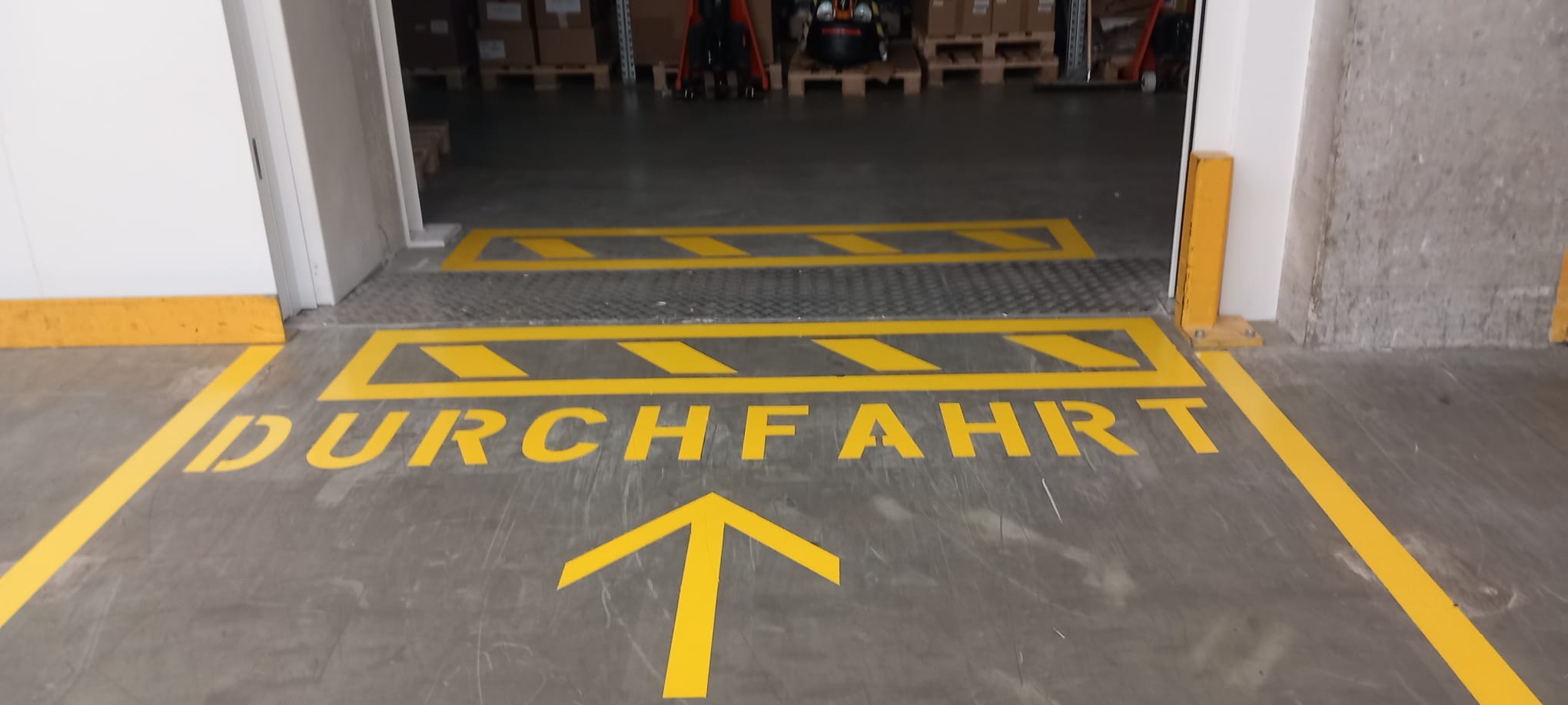 Maßgeschneiderte Lösungen durch signalrote Bodenmarkierungen.