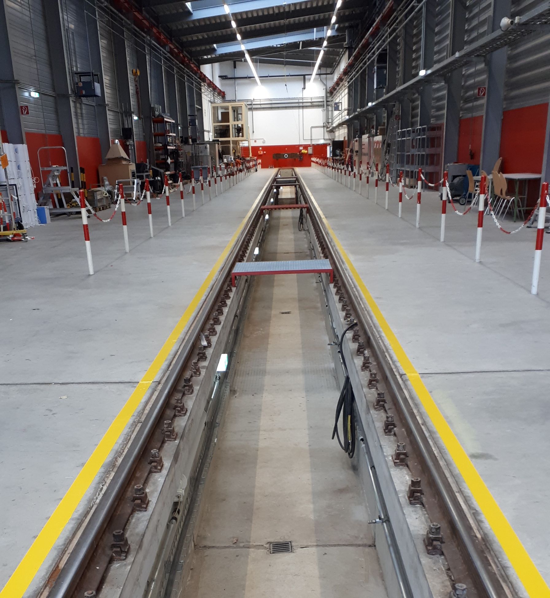 Lange Fußgängerwege in einer Frachthalle laut Kennzeichnungs-Verordnung.