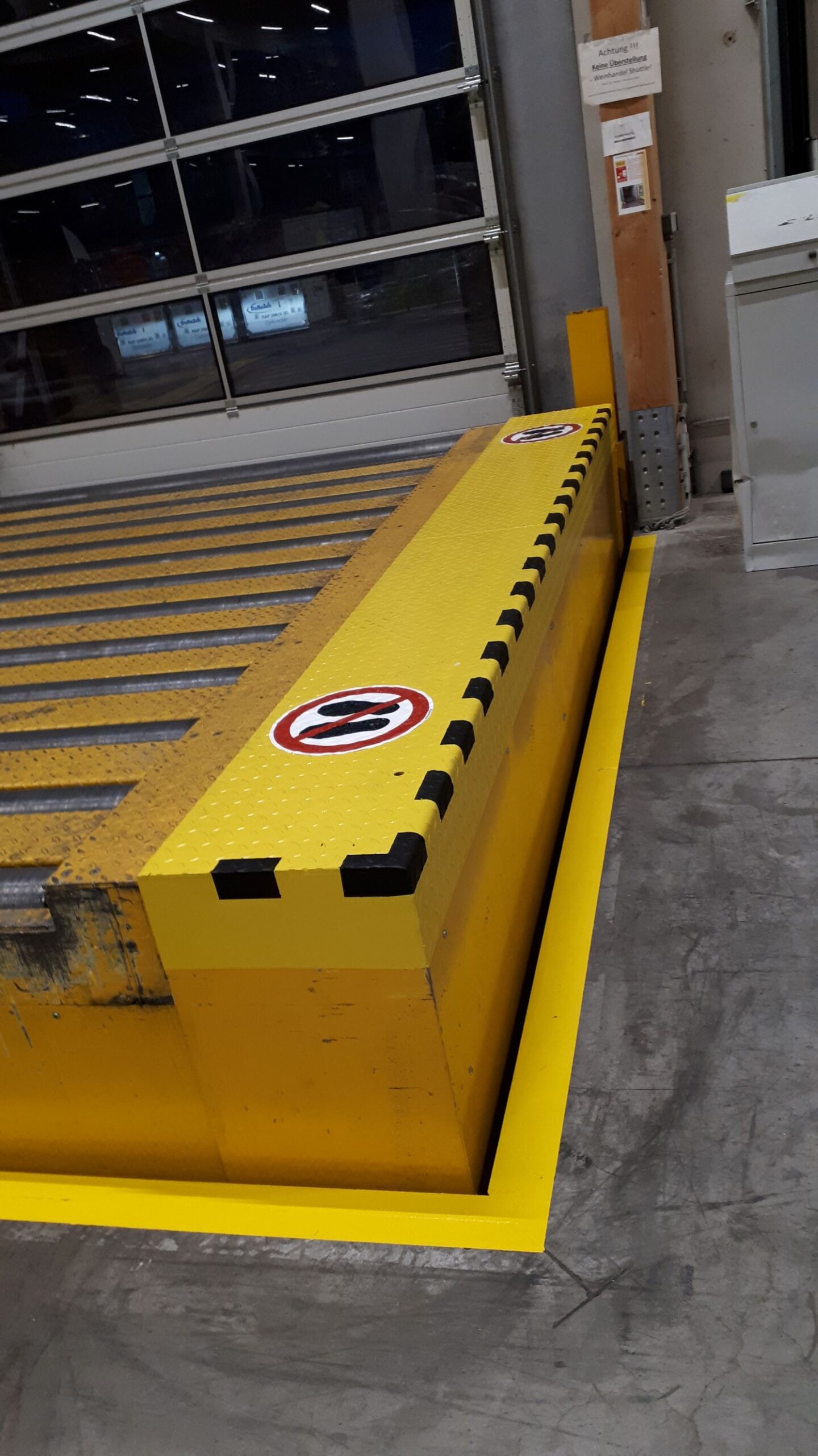Warnmarkierung der Randkante von versenkbaren Laderampen bringen Sicherheit.