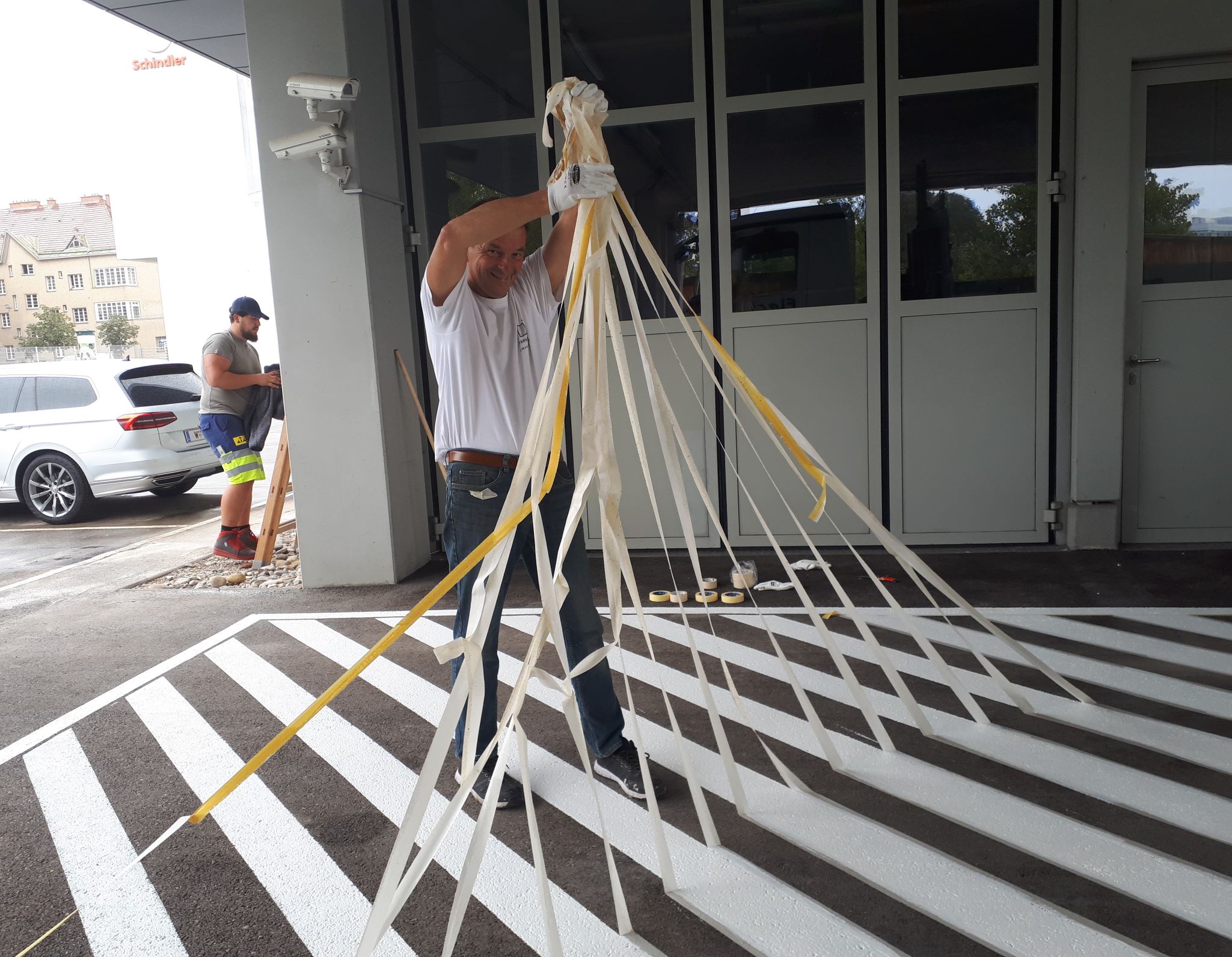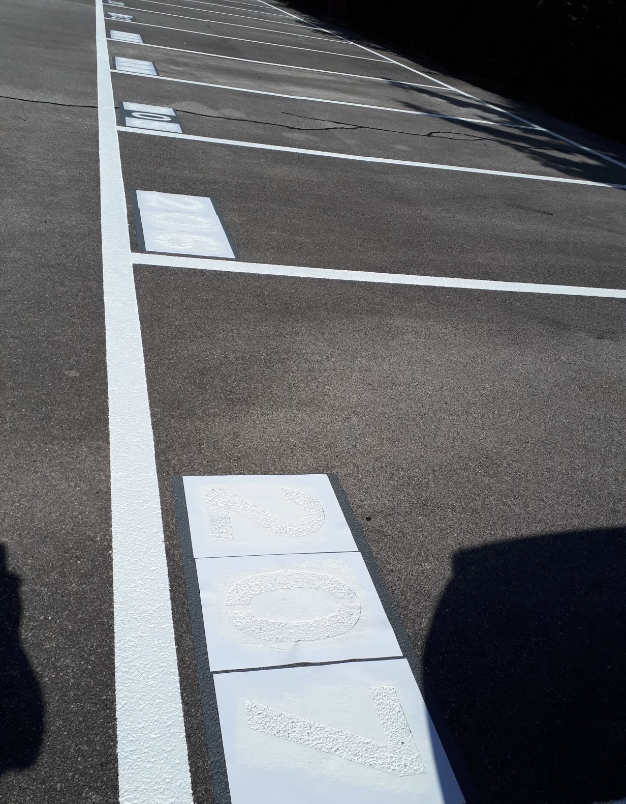 Manuelle Abklebung nach Planvorlage auf großem Parkareal.